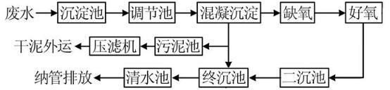 (7)污泥池。1座,利用原有污泥池,地埋式鋼砼結(jié)構(gòu)。收集并濃縮各個池所產(chǎn)生的污泥、浮渣等。尺寸2.5m×2.0m×3.5m,有效容積15m3。配套設(shè)備:3kW框式攪拌機(jī)1臺;螺桿泵1臺,流量5m3/h,壓力0.6MPa,功率2.2kW;涂覆塑料防腐漆型帶式脫水機(jī)1臺;帶機(jī)清洗泵1臺,流量8m3/h,揚程49m;空壓機(jī)1臺,1.5kW;加藥裝置1套,有效容積1000L。